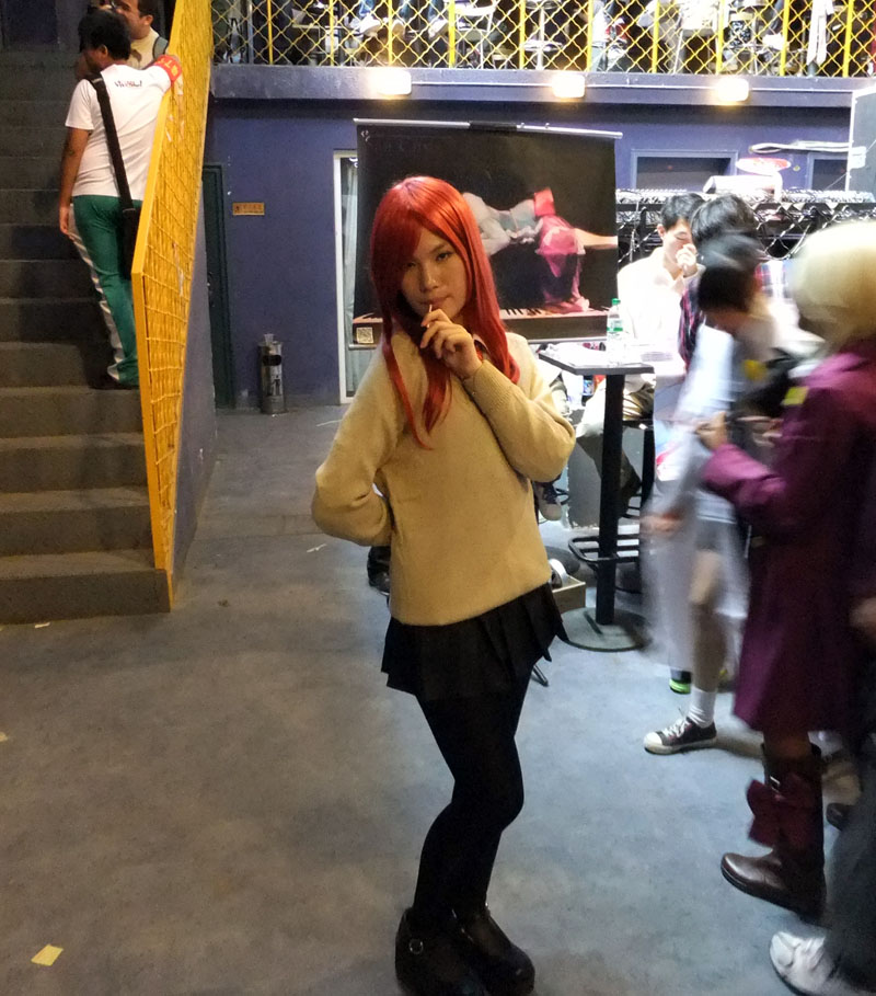 这次来的女性相对少一些,平均相貌则比一般漫展的高出一大截。因此逛完摊位丝毫不无聊,站在二层看台上,把相机画面放大,俯视一层的观众和摊主、搜寻养眼画面就是个享受。这次发现一名带着“总攻”红袖标的观众,还带着BRS的包,与之擦肩而过时发现她清秀极了,令我顿时眼前一亮,好像旁边站着的男人看到她后迅速拍照。我也在各个角度照了许多张,而且还录了视频。可惜,馆内大部分区域光线不好,也没有好的能够近距离照相的位置。由于未经同意将照片弄到网上也不好,于是这里只放出几张拍模糊的。想要视频的可私下联系寡人(免费)。