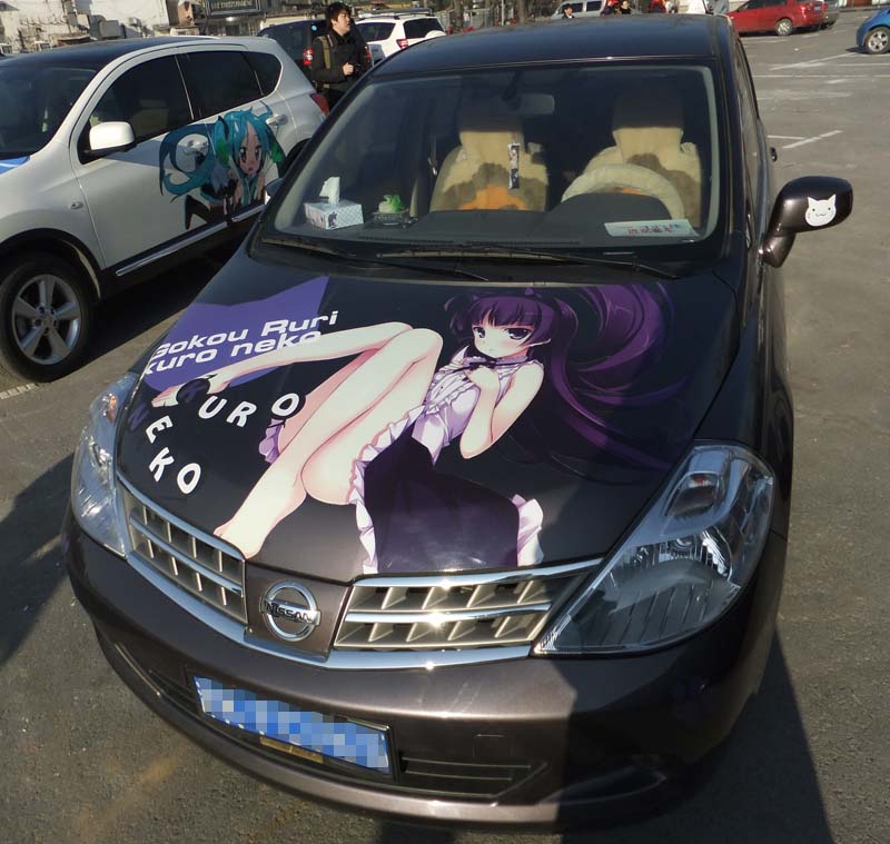 由于图太多,这里只放出一部分。先放出门口的痛车图。我觉得应该专门给痛车们留出一块大间距停车位,这次间隔太近导致拍摄略有不便。