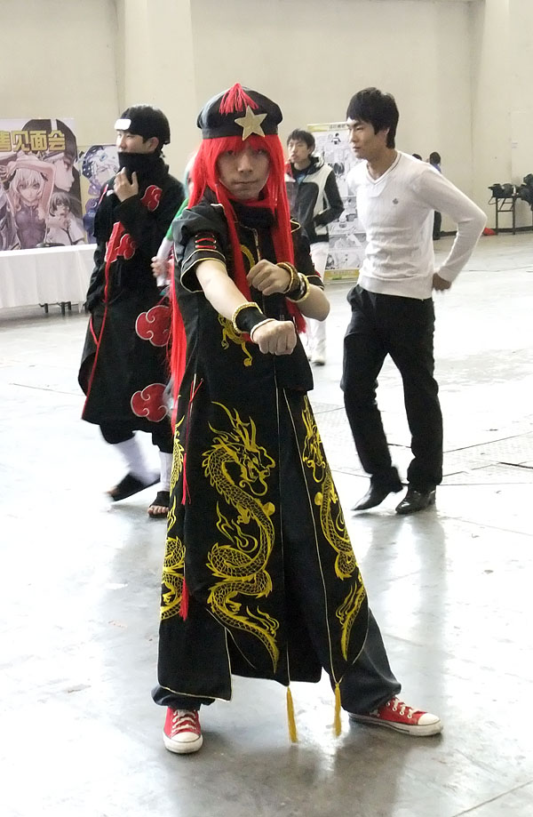 多数展会一般都是将演出排在下午,而且比较短。而这次,一大早宽大的演出台上就一个接一个上去唱歌,貌似是观众事先自发报名的。歌声、乐声使广阔的场馆内的气氛逐渐被带起来。普遍唱得都很不错,尤其是数首燃歌,包括萝卜系的几首和灌篮高手、七龙珠主题曲效果相当赞,其中一位歌手还很眼熟,记得在AM3上热唱青之驱魔师的就是那位。我觉得,其它ACG展会中就算不安排歌唱演出,也应该在场馆内不断播放各种anisong,这对于提升气氛是很有必要的。