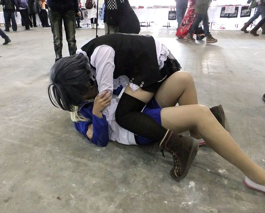 展会上最珍贵的镜头莫过于这些推倒事件了,尤其是百合事件。我总想把展会内一切推倒都拍下来,不过凭借一己之力无法做到。
