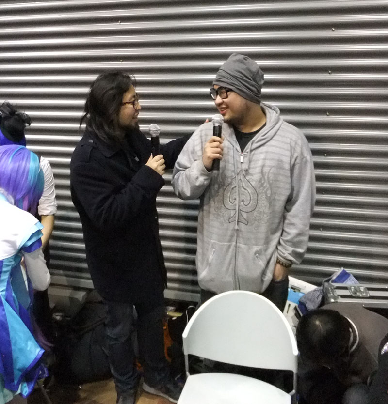 此展会邀请了一些嘉宾,包括挺有名气的冰爷(即很能卖萌的新月冰冰)、Hank(调教葛炮唱《循环》的那位)。很意外地发现,居然小祈(屡次在ANIMANIA演出中登台的那位)也被请来,感觉小析近距离看比以前在AM演出时远距离看明显更漂亮。而且,能看到很多小祈的百合镜头!(比如坐在另一位妹子的腿上并被轻轻缠住腰)此次漫展的主要的乐趣我认为是唱歌,既有冰爷、小祈和其它一些工作人员唱,普通游客也可以将伴奏拷到电脑里然后对着麦克唱歌,全场数个喇叭同时播放。唱歌没有大舞台,就是在两三个摊位大小的地方站着或坐着唱。感觉这样比较好,比较自在,唱的人不累也不紧张,游客也不需要围到舞台旁边去听,仿佛整个船内成了一个K歌包厢似的。从我进去到下午将近4点结束的期间,一半多的时间都一直有人在唱(这倒是有点类似于次元震荡展会的上午场)。歌曲有不少都脍炙人口,尤其是唱到数码宝贝里的Butter-Fly和千本樱的时候,周围围着的好多人,包括寡人,都兴高采烈地一起大声同唱,简直就像AM演唱会的情景,这种气氛真是很激动人心,甚至寡人被这般场面瞬间感动得冒出一滴泪水。千本樱这首歌,感觉无论何时何地,只要发自真心去唱,无论唱功好坏,总能让附近的空气都充满激情。