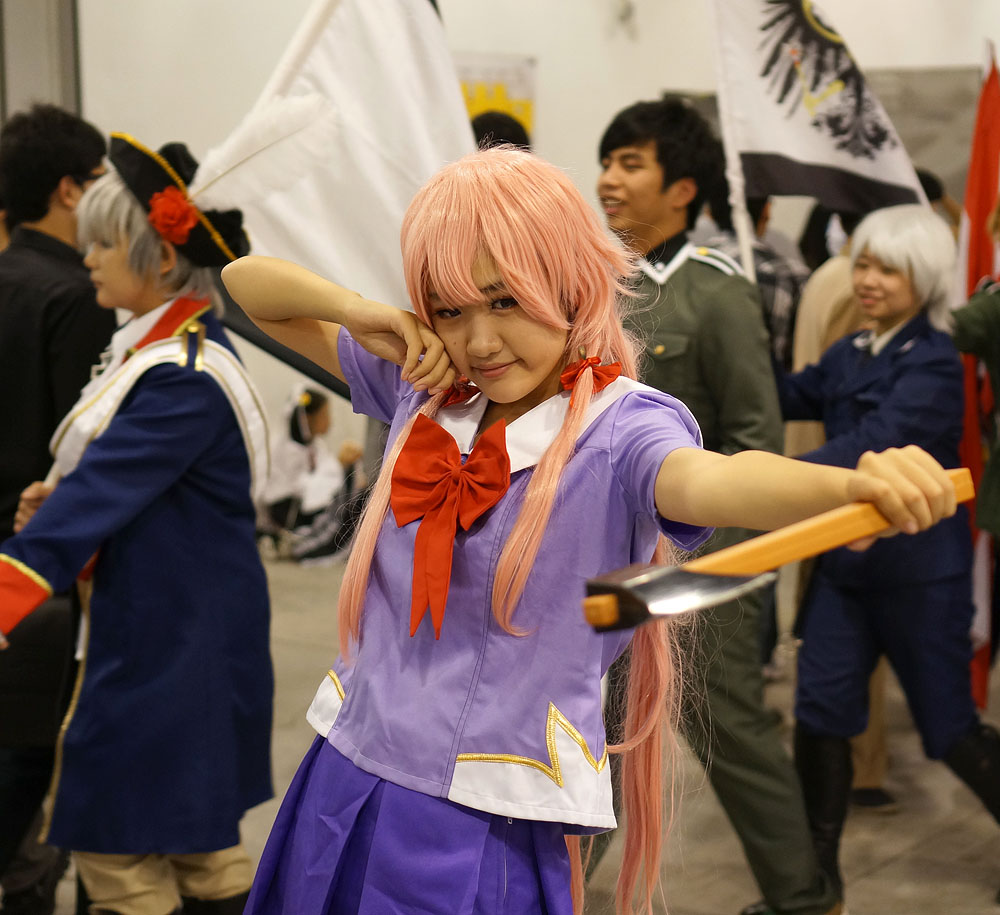 卖纸模制作材料的摊位的展示。很多人经过的时候都啧啧称奇。寡人亲自做过,辛苦程度也深有体会。若有足够时间的话,我肯定也能做出这个saber,虽然很花精力。