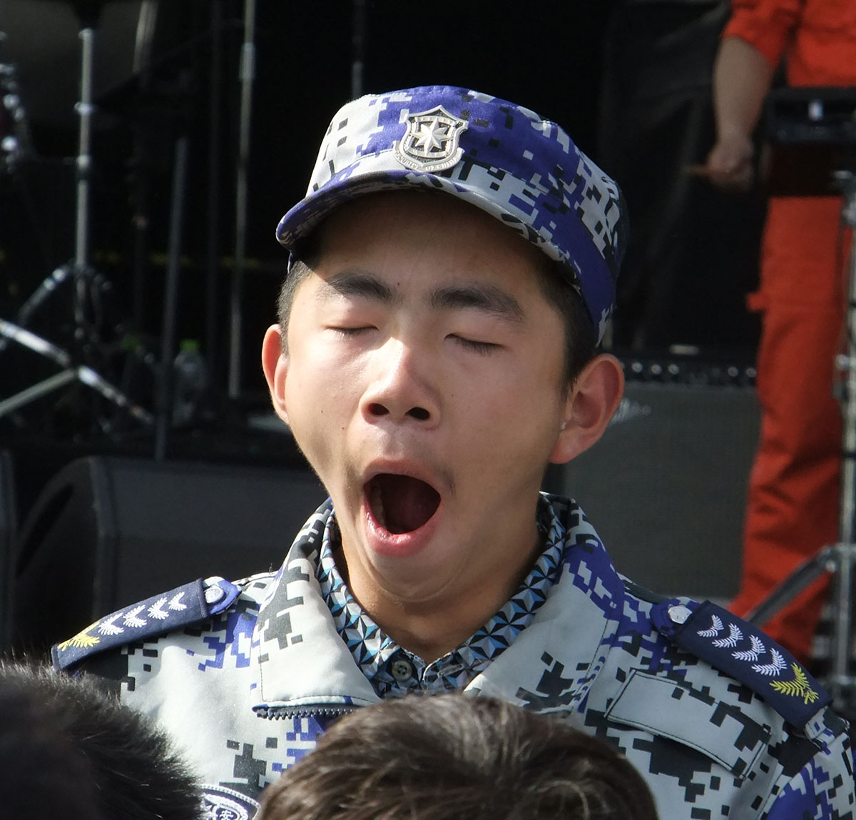 绝大多观众看起都比较普通,也没什么奇装异服的。居然看见有cos小圆的一人。队伍中这个人的衣服挺有趣,如果去TAM广场,难保会被抓