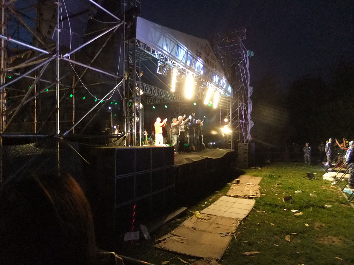 演出的喇叭声开得特别大,架子鼓敲得心脏都在振动,音乐停了之后顿感四周声音都变小了。听重摇滚就是要这种感觉,I like it。不过,站在离舞台特别近的三个保安一定觉得耳朵快聋了,挺可怜。