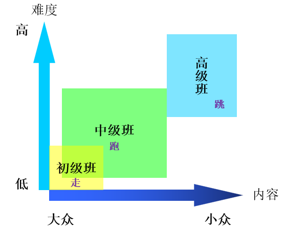 下面分别介绍北京科音的初级、中级和高级 班的特点和定位:
