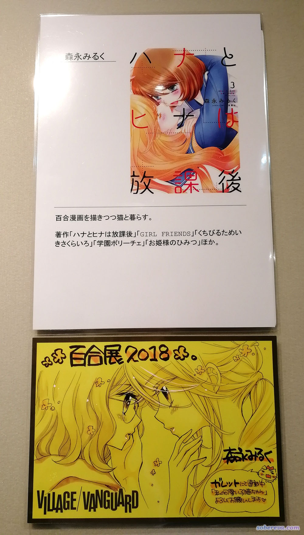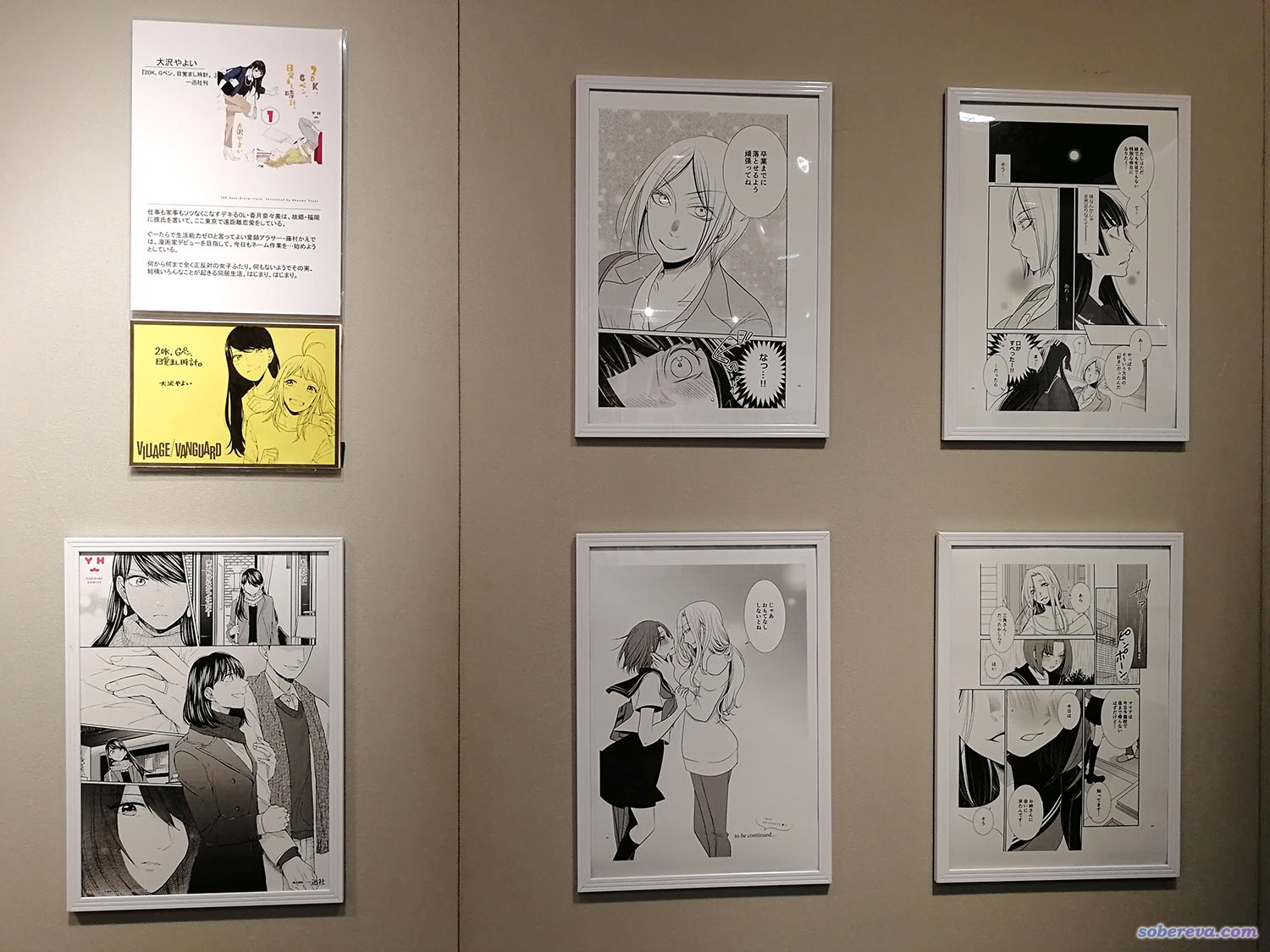 场内可以拍照,以下是场内所有出展作品的照片,展出的主要是漫画、原画、摄影作品。这只是个小展,但从照片上看内容还挺充实的。本以为有漫画家会在百合展签售,但当天并没有作家在现场。要是真在现场的话,真想要吉富昭仁、森永milk的签名啊,也想听听关于作家本人的相貌描述。据说,那天的观众什么层面的都有,既有少女,也有中年百合阿姨CP,也有油腻腻的端着单反的大叔,也有男女情侣。