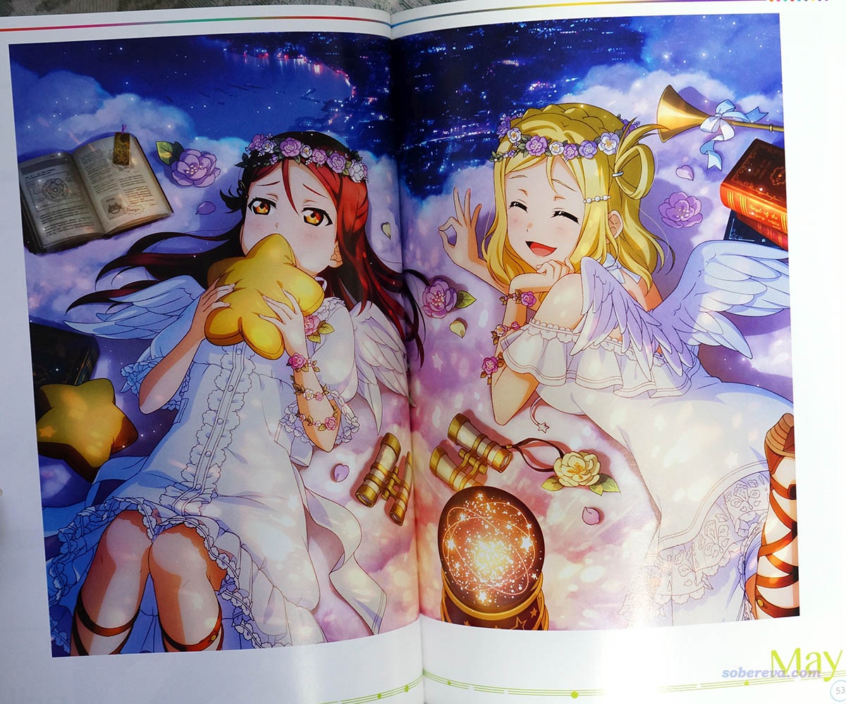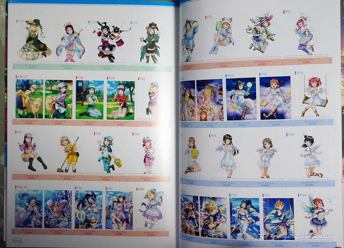 lovelive手游水团的卡牌的公式书。这个超值,非常厚,里面整体作画质量很高,有不少画面可谓极品。看此书时可以把此书收录的时间段内的所有水团卡牌尽收眼底,对于玩ll手游的人颇具价值。而且会发现,原来很多卡的图像是一张完整的大图拆分开的,看了此公式书终于才一次性看到了全貌。