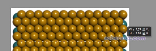 然后按照下图,用矩形选择工具,从图中最上面一层的最左边的硫的中心位置拉到最右边的硫的中心位置,总共横跨12个S-S键。