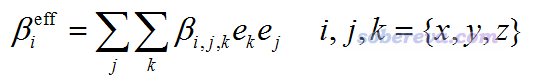 其中e(θ,φ)是从原点朝向球极坐标的(θ,φ)方向的单位矢量。beta既可以是静态的也可以是动态的,原文里只将此方法用在了对应SHG的beta的情况,并且把βeff称为“有效SHG偶极”或“有效非线性偶极”。为了避免含糊,笔者下面给出βeff的i分量的具体的计算表达式