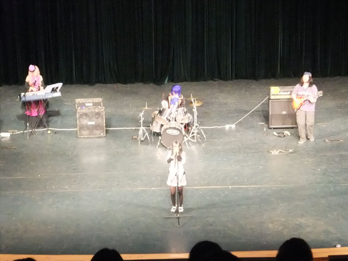键盘手(女仆装)和两位歌姬。键盘手很萌。