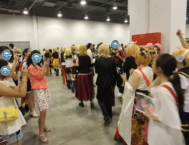 我真是不知道为什么镜音会这么受欢迎!coser的数目似乎超过miku很多。这大抵是场馆内所有镜音集合在一起的开火车,甚为壮观。