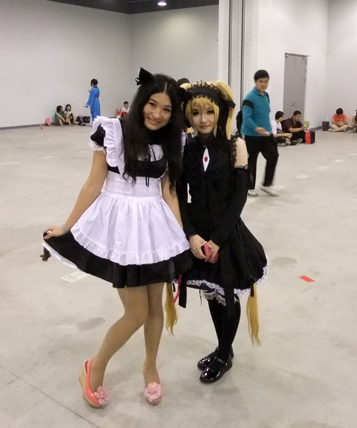 这位的身材与Miku真是精妙地相符,再合适不过了!没想到会穿得这么凉快,养眼得很(另一位我就不评论了)。粉头发的居然跳着跳着假发快脱落了。跳舞跳到一半时,在人群中当中突然钻出数名保安,但是没影响演出,很快就走了。真是吓我一跳,还以为是文女士觉得表演不HX而举报了。