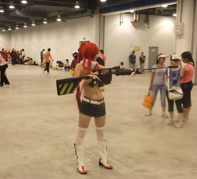展馆外停着辆构图很好的EVA痛车,听闻广州还有《花吻》的痛车,我想我若有车的话,我也一定要痛一痛,某种程度上也可以借此宣传自己喜欢的、优秀的却冷门的作品,比如《Rio-Rainbow Gate》、《Blood C》(这两部作品的女主真是魅力无穷!)。