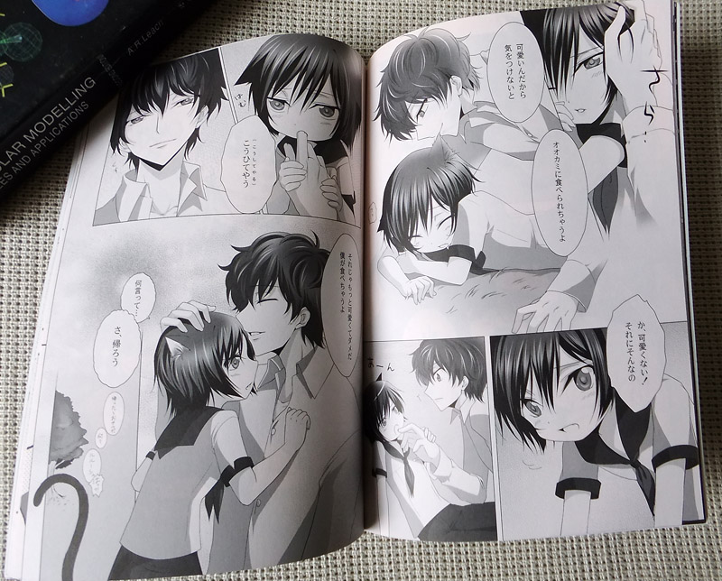 左边本子的内部。虽然猫娘是很萌的设定,但也开始觉得,图中的猫正太也不错啊。